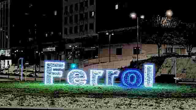 Las letras de Ferrol brillan en la rotonda de las Pías